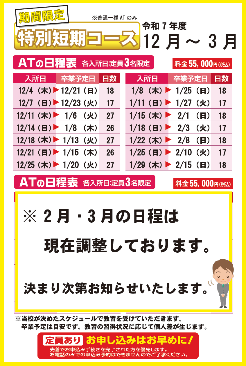 HOME > お知らせ > 最短17日で卒業! 普通一種 特別短期コースのご案内